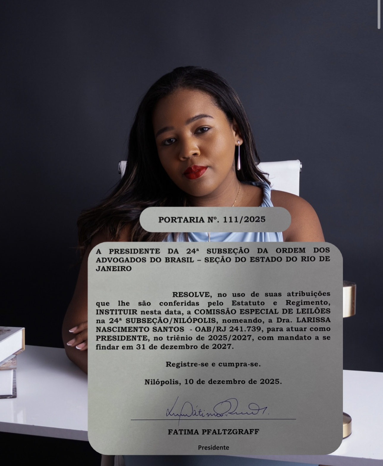 No dia 10 de dezembro de 2025 a fundadora da Axis leilões, Drª Larissa Nascimento Santos recebeu a posse conferida pela presidente da OAB subseção Nilópolis para assumir a função de presidente da Comissão de leilões da OAB Nilópolis durante o triênio 2025/2027.